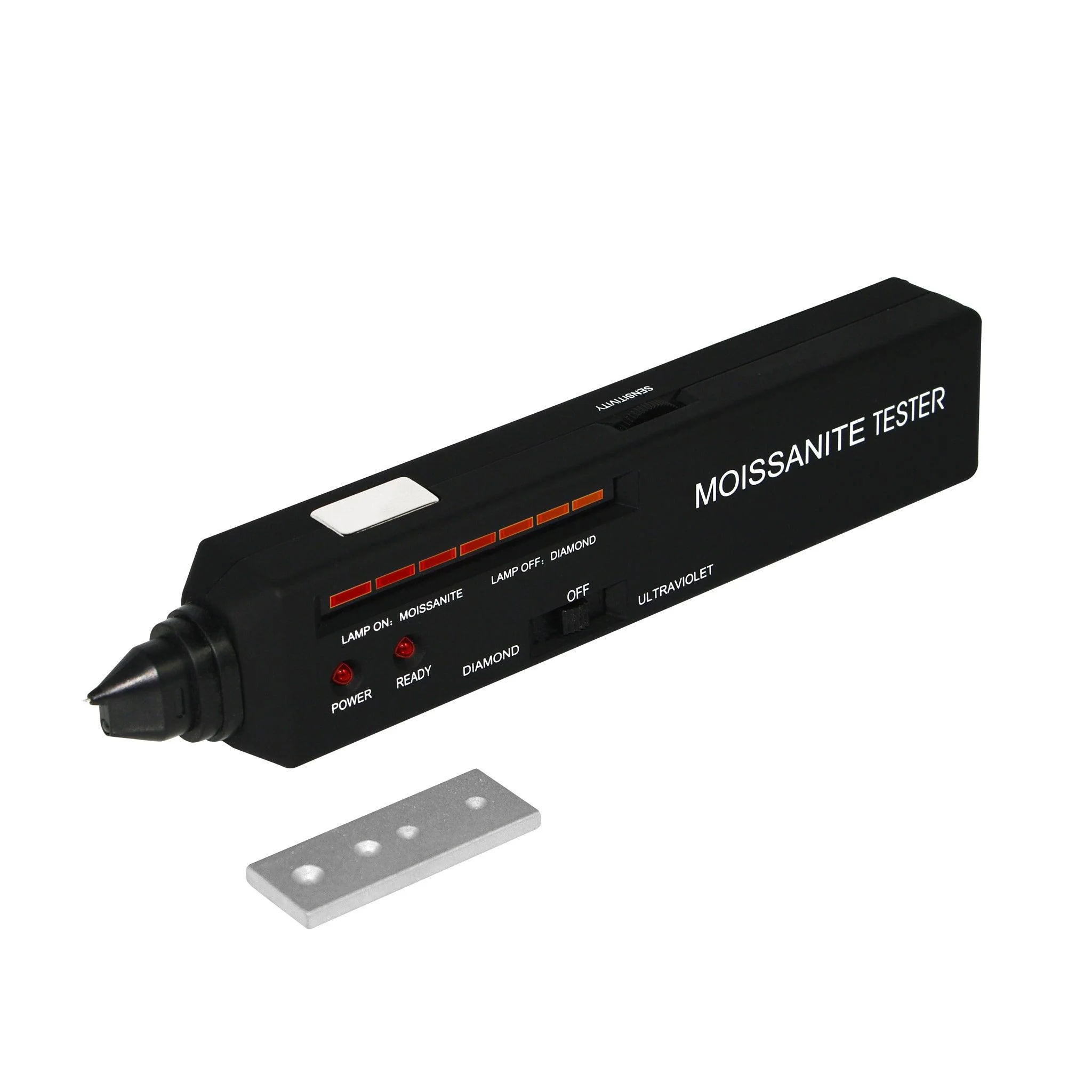 By using electro conductivity technology, this cheap moissanite tester is able to tell whether your gem is moissanite or something else. Your gadget has been equipped with an extremely durable probe that delivers ultra-fast and precise readings on both loose rocks and stones mounted in jewelry. It furthermore comes with a built-in UV light that lets you check your diamonds for fluorescence. With its 9v cell, your gizmo has enough juice to get through the longest of days without you needing to worry about running out of juice. It furthermore features a lightweight and compact design which makes it easy to carry along to trade shows or on business visits. This moissanite tester comes with its own high-quality case and stone tray to hold your rocks.